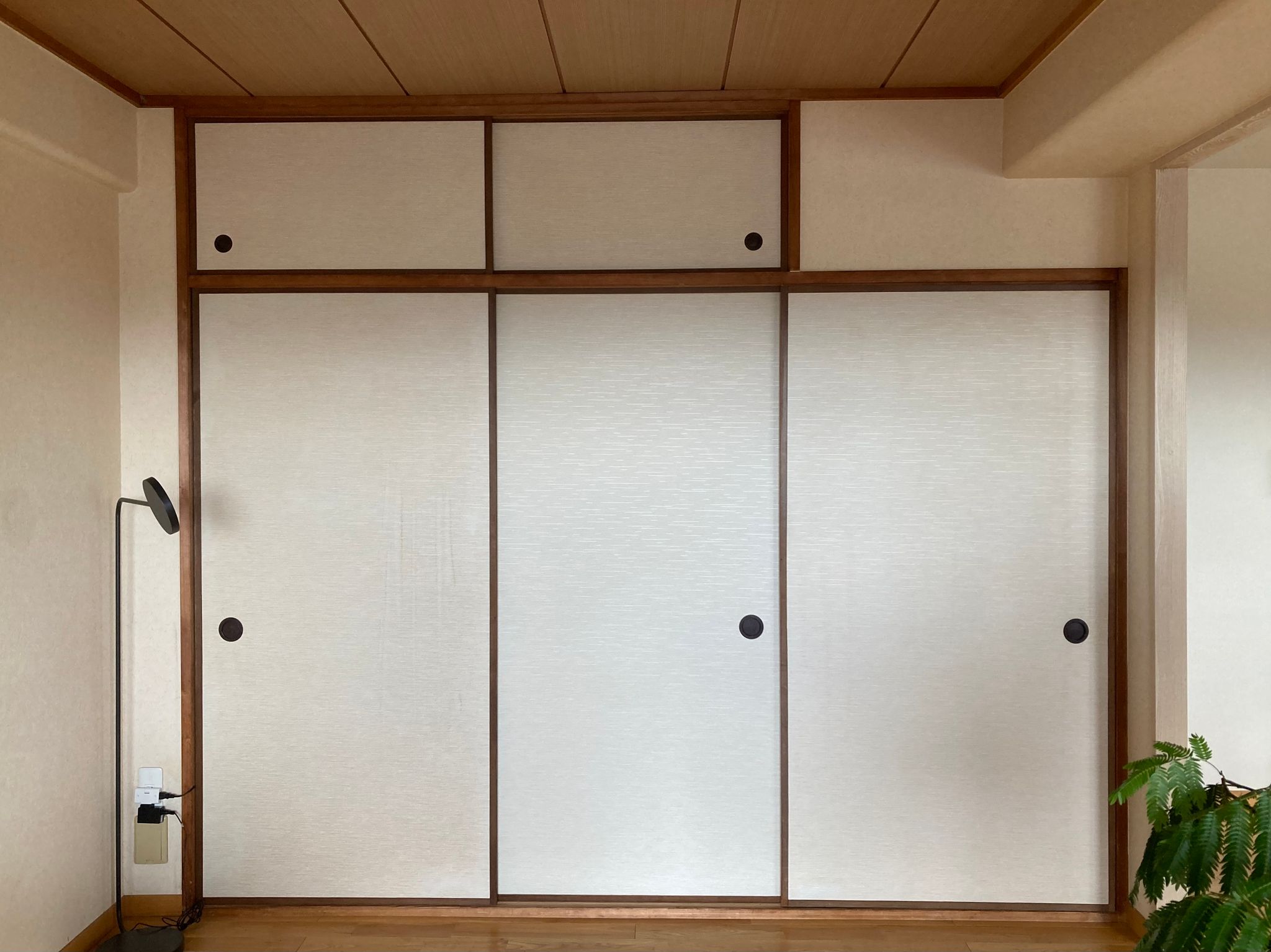 今回の押入部分の更新では、既存の鴨居と敷居を活かし、吊元を自由にできる4枚折れ戸を設けました。扉を開けた時に家具などの邪魔にならないという開閉方法の自由度、どの場所でも簡単に物が出し入れできるという使い勝手の良さが、日々の動きに自然に馴染んでいるように感じました。