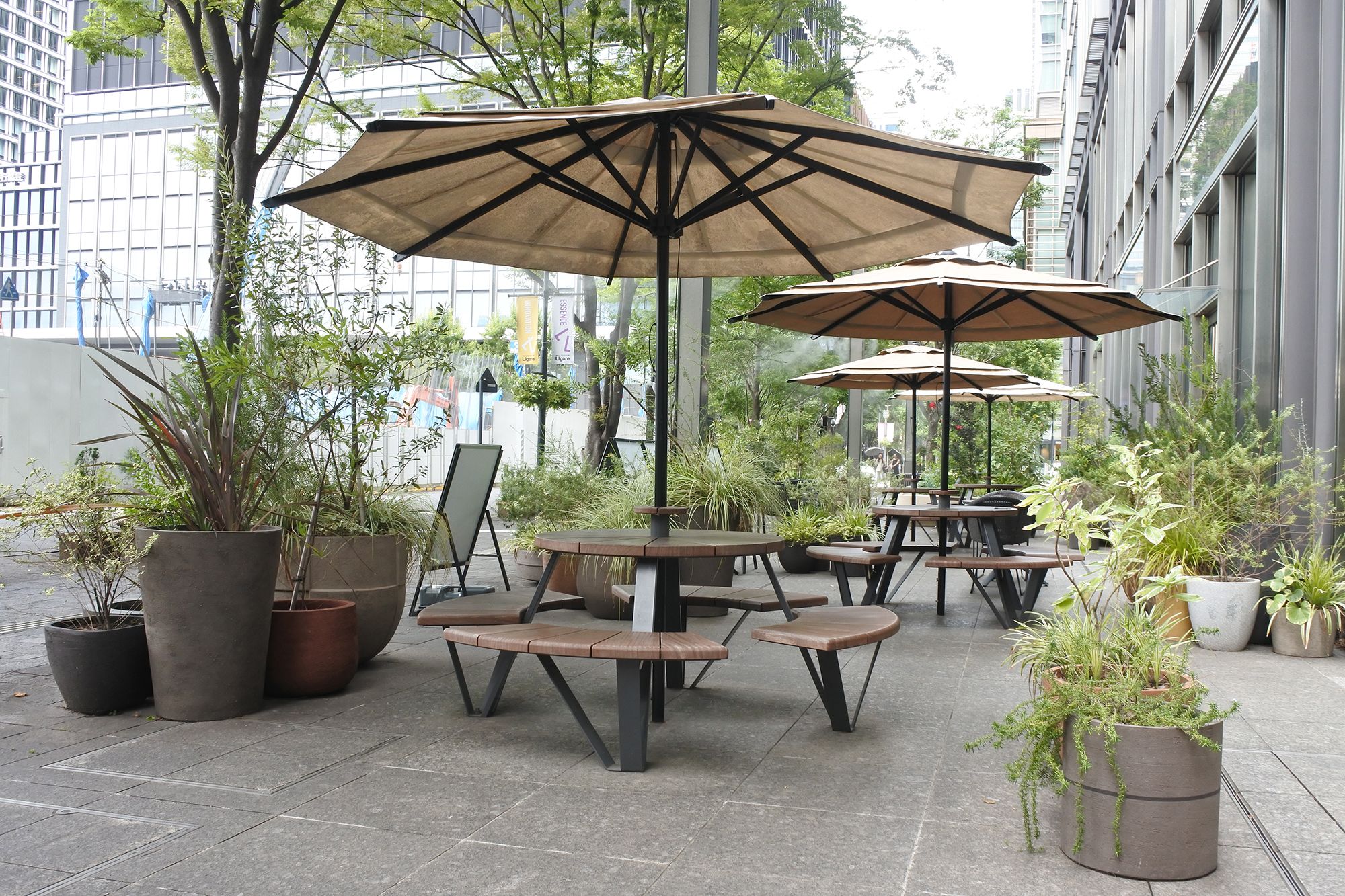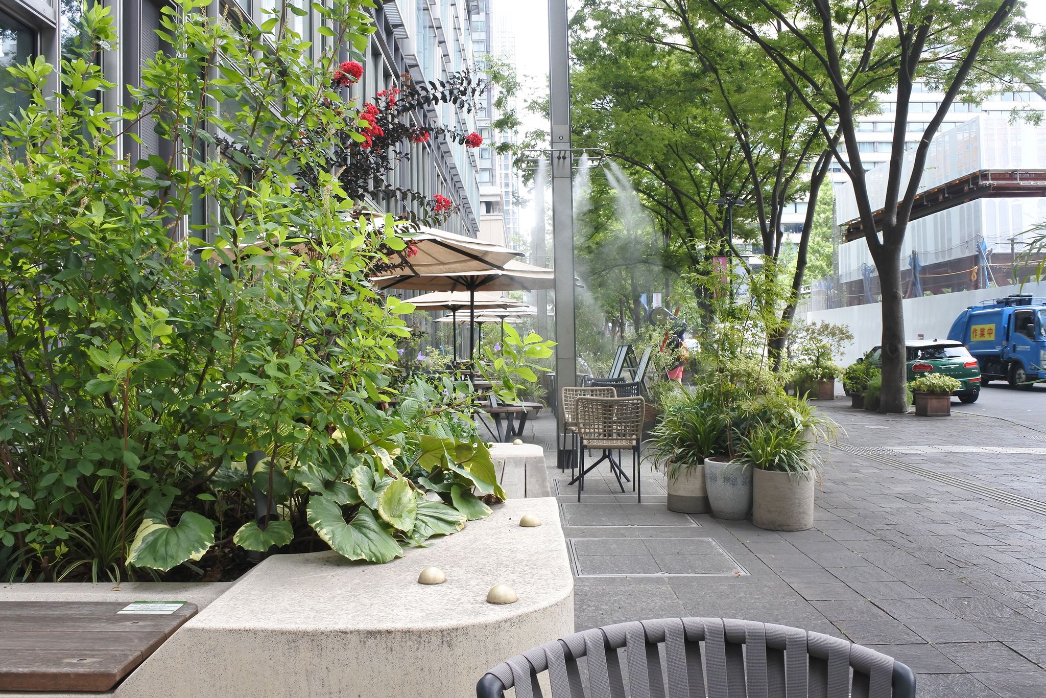 竣工後すぐに道路を挟んですぐ向かいのビルが解体され、その後新築の工事現場となったため、什器類の汚れが想定より早いですが、植物にとっては陽当たりが良くなり好環境なのかもしれません。